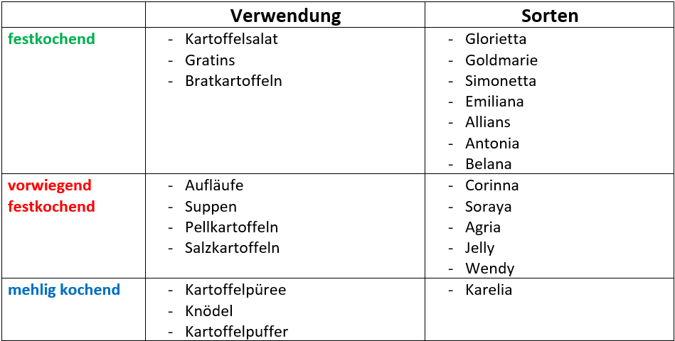 Aktuell haben wir folgende Kartoffelsorten für Sie abgepackt: